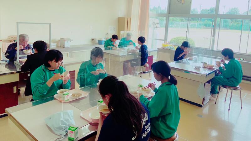 今年度は1年生と2年生が一緒に給食を食べています。みんなとても仲良しで給食の時間はとても楽しそうです。早くアクリル板なしでおしゃべりしながら給食が食べたいなー。
