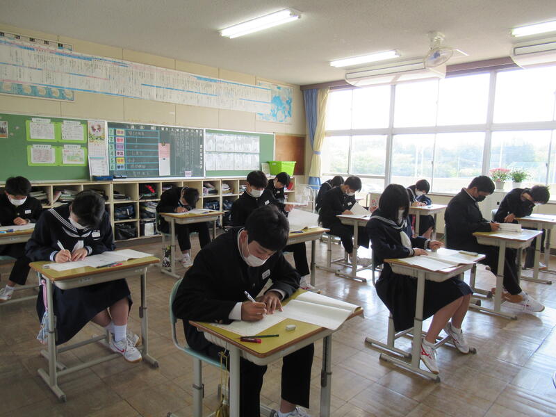 中学校3年生を対象にした「全国学力・学習状況調査」を実施しました。今年度は、国語と数学の調査の他に、4年ぶりに英語の調査も実施されました。どの生徒も真剣に問題に取り組んでいました。