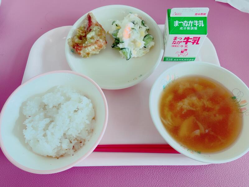 今日は月に1回の「日本型食生活献立」の日。「日本型食生活」とは昭和50年代頃の食生活のこと。ごはんを主食としながら、主菜、副菜に加え、適度に牛乳、乳製品、果物が加わった、バランスのとれた食事です。