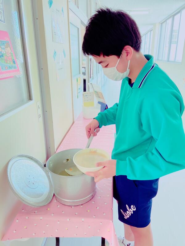 おいしいスープをたくさんおかわり!おかわりはマスクをつけて感染対策☆