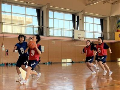 高校受験もみんな終わった今日、全校体育でバスケットボールを行っていました。学年、男女問わずわいわい、楽しくプレーしていました。卒業まで残りわずかとなり、名残惜しい日々をみんなで過ごしています。