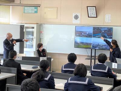 東日本大震災から12年が経とうとしている今日、防災教育講演会を実施しました。今回は、復興支援センターMIRAIの高橋さんを司会に、そして磯部の子どもたちを常日頃見守ってくださっている荒さんと、阿部さんを講師としてお呼びしました。震災以前の磯部の様子と、12年前のあの日の出来事を聞かせていただきました。荒さんは、地震直後から、津波が襲来し、磯部小に避難するまでの様子を、まさにその場の当事者として詳しくお話しされました。「地震が起きたら津波が来る」という教訓を、子どもたちに伝えられました。阿部さんは、消防団だった息子さんの責任感、人と人とが寄り添いながら支え合う大切さ、感謝の心などを教えていただきました。今日の講話を通して、子どもたちには「命の大切さ」を強く心に刻んだことと思います。