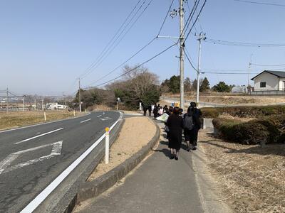 そのあと、磯部地域の慰霊碑まで移動し、そこで磯部小学校の子どもたちとともに、献花し、鎮魂の祈りを捧げました。あの日津波の犠牲になられた方々を想い、ご冥福をお祈りします。