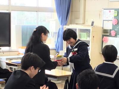 いつもおいしい給食を作ってくださっている給食調理員さんたちに、全校生からの感謝のメッセージカードを作りました。昨日の放課後、保健委員会がみんなを代表して渡しました。