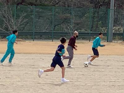 2023年3月16日 15時08分昼休みはいつも、校庭で男子たちが元気にサッカーをしています。今日は、ALTのアシフ先生が参加していました。バングラデシュ出身のアシフ先生も、寒い日本の冬を乗り越えました。