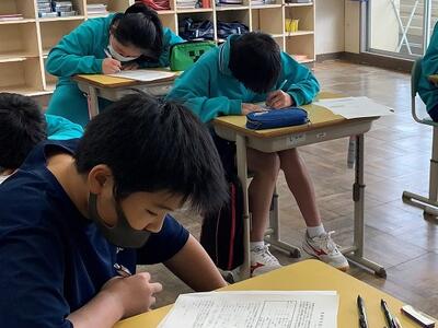 今日の6校時に全学年で黒潮祭の反省を行いました。自分の取り組みを振り返ったり、周りの頑張りで印象に残ったことなどを文章にまとめていました。友達と協力して何かを作り上げる喜びを感じることができたという感想や、がんばって準備、練習したことで、保護者の方々に楽しんでもらってよかったという感想などが多くあり、満足感や達成感を得ることができました。