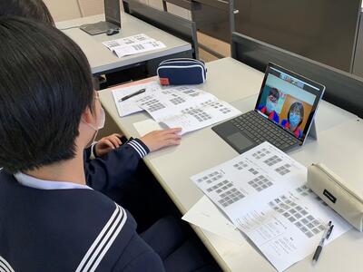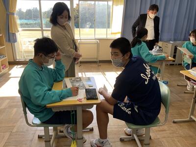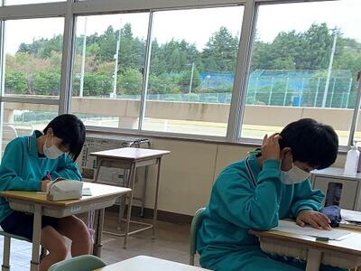今年度も復興支援センターMIRAIによる「中学生が見るふるさと相馬」のデータブックのプロジェクトに参加しています。以前、本校の代表者2名が、あおさのフィールドワークに参加し、地域の魅力や課題について学んできました。今回は、向陽中学校の生徒会とオンラインで、課題解決について話し合いました。あおさの魅力を多くの人に知ってもらうためにはどんな方法や手段があるかなど、向陽中と磯部中それぞれから、アイディアを出し合って、有意義な意見交換ができました。