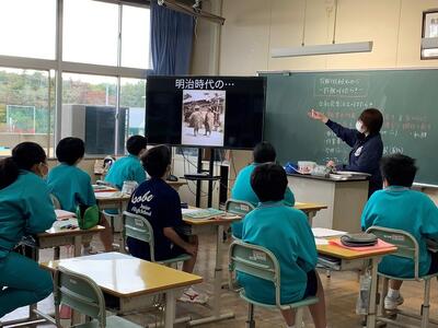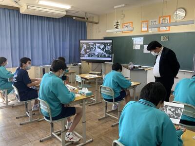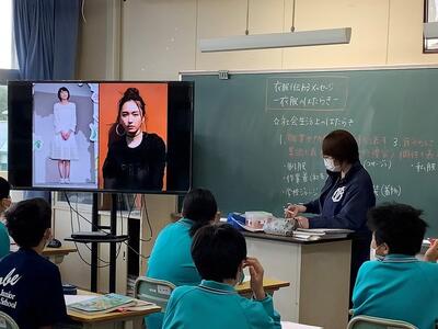 1年家庭科の授業では、「衣服のはたらき」について学習していました。制服や作業着、民族衣装、私服など社会生活上のはたらきという視点で見ると、新たな発見があり、子どもたちは「なるほど」と納得しながら聞いていました。