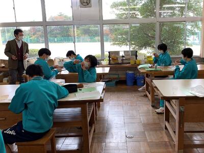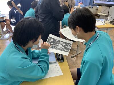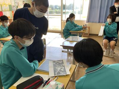 3年美術で研究授業を行いました。ピカソの「ゲルニカ」という絵を鑑賞し、込められたメッセージは何か、互いの感じたことや、思っていたことを理由や根拠をもとに話し合い、発表する授業でした。そして、この絵は、ピカソが戦争に対する怒りを表現したという事実を知り、社会における美術のもつ力を感じ取ることができました。