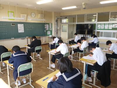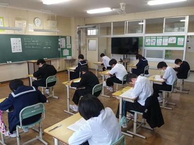 2日目の定期テストが終わりました。テストは自分の学習状況を客観的に把握するためでもあり、取り組みの反省やテスト問題の復習などをして、今後の学習にいかしてほしいと思います。