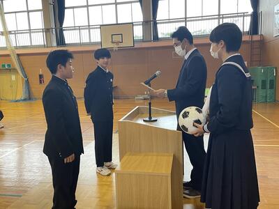 先日行われた相双新人バレーボール大会で、男子は優勝、女子は鹿島中学校との合同チームで3位となりました。新チームになっても伝統を引き継ぎ、さらなる高みを目指して頑張っています。