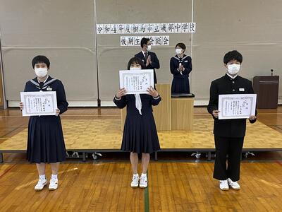 また、総会のあと、表彰伝達を行い、英語弁論大会と読書感想文コンクールの入賞者の栄誉をたたえました。