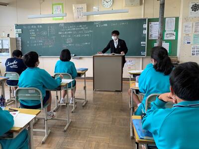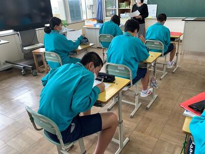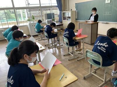 今日は、英語は稲村先生、数学は白岩先生とのTT授業が行われていました。今中学校で学習していることが、高校の学習にどのようにつながっていくのかなど教えていただき、学習意欲の向上にもつながります。
