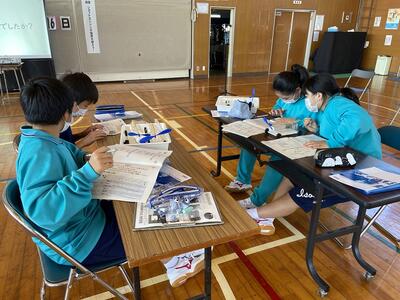 株式会社IHI様のご協力により、毎年科学の出前講座を行っています。今回は、1年生8名がゴム動力でプロペラを動かす模型を作り、ジェットエンジンの仕組みを楽しく学びました。