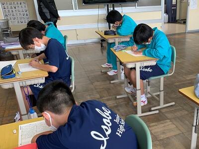 相馬市から提供されている新聞のコラムを教材とする「コラムシート」を使って、読解力の基礎を養います。