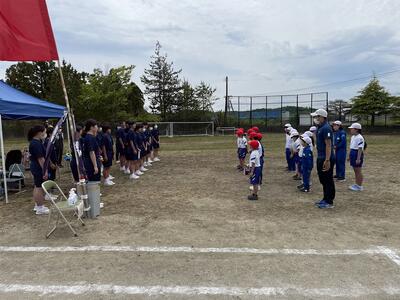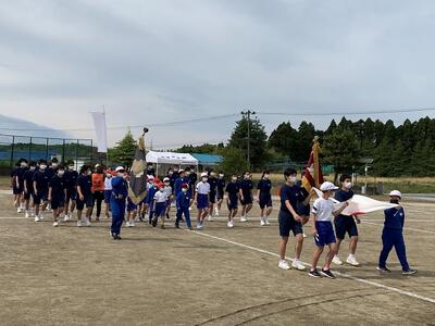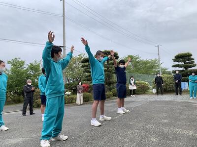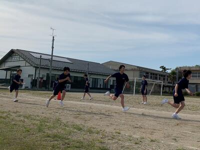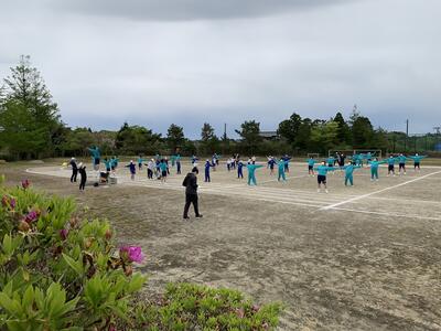 今週土曜日の運動会に向けて、初めて磯部小学校と合同で練習しました。合同で練習できるのは今日だけなので、開会式から閉会式まで、動きを確認しながら、練習しました。小学1年生から中学3年生までが一緒に行動する場面は貴重であり、中学生にとっては、年上の者としての責任感を強くする機会となりました。