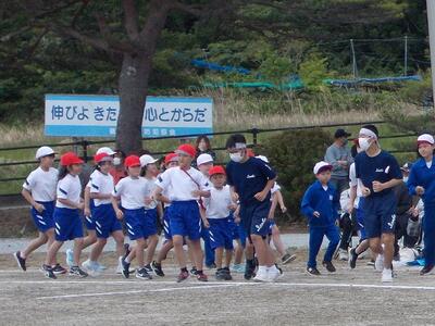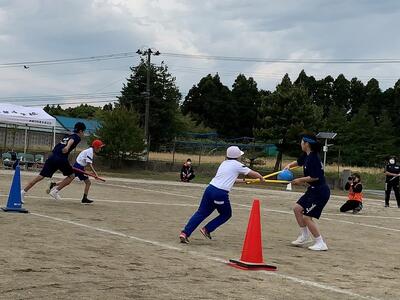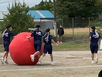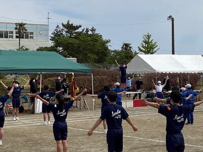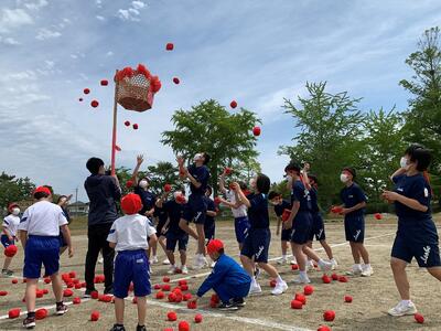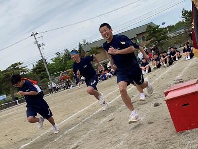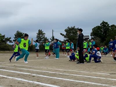 中学生は、「玉入れ」、「チャンス走」などで、小学生をリードしながら、力を合わせて競技しました。また、「磯中ソーラン節」で躍動する姿を、小学生はあこがれの眼差しで見ていました。全体を通して、中学生がきびきびと係の仕事を行ってくれ、スムーズに進行することができ、競技だけにとどまらないすばらしい活躍でした。最後の、小学1年生から中学3年生までがバトンをつなぐ、「ウルトラ全員リレー」も互いの応援で盛り上がり、最高潮に達しました。