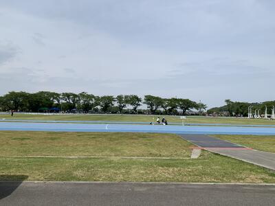 ほどよい天気のもと、陸上大会に本校の選手たちが参加し、頑張っています。