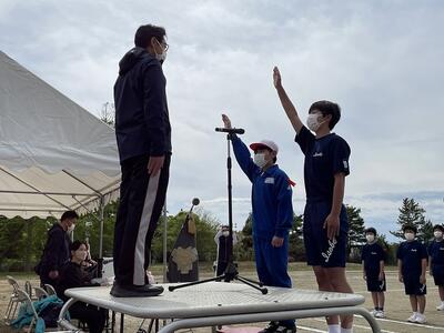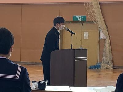 生徒代表から激励の言葉や、応援のエールを贈り、健闘を祈りました。それに対して選手代表から、自己ベストを目指して頑張りますと決意表明がありました。