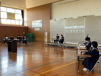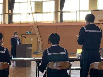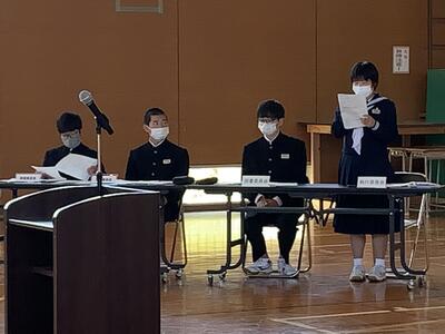 生徒会本部から決算報告、予算案の提案、そして今年度活動方針が発表されました。今年度のスローガンは「LINK2022~One Team 未来への挑戦~」です。その後、各委員会委員長、各部活動部長が、前期の活動計画を発表し、質疑応答がなされました。自分たちの学校をより良くしていくために、生徒一人一人が考える機会となりました。