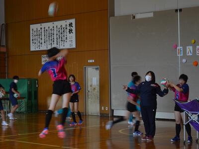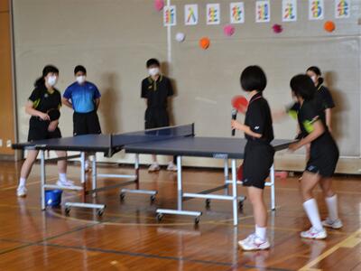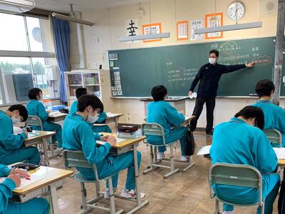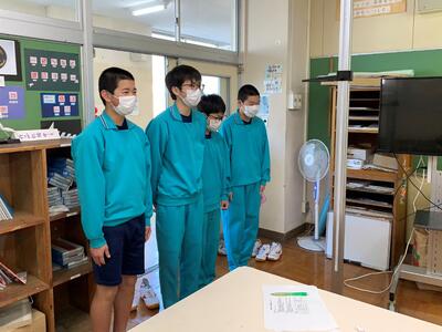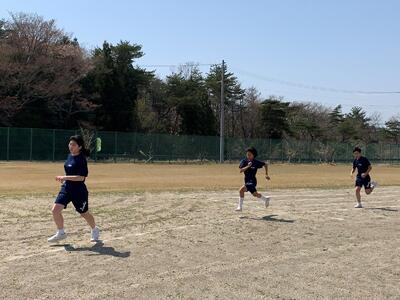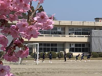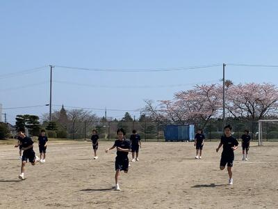 本校体育館が、昨年2月の地震による被害からの復旧工事のため、4月8日~5月12日まで使用できません。その間、磯部小学校の施設をお借りして活動を行っています。練習環境を確保するために、小学校の先生方や、スポーツクラブの方々の配慮をいただいていることに感謝します。今年に入って、市内感染症拡大の影響での部活動の中止や、3月の地震による影響など、様々な困難が続いていますが、目標を見失わず各部がんばってほしいです。