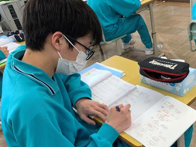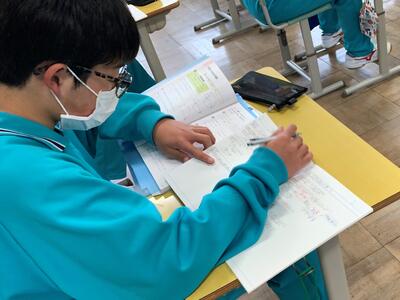 先週の授業は自己紹介やオリエンテーションが主でしたが、今週は授業が本格的に始まってきました。1年生は、教科ごとに先生が違う中学校の授業に戸惑いながらも、どの授業も頑張って取り組んでいました。