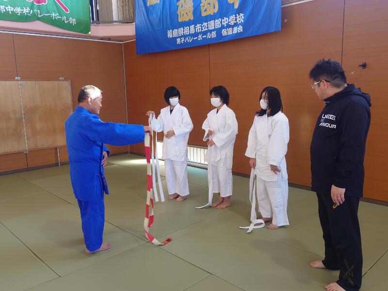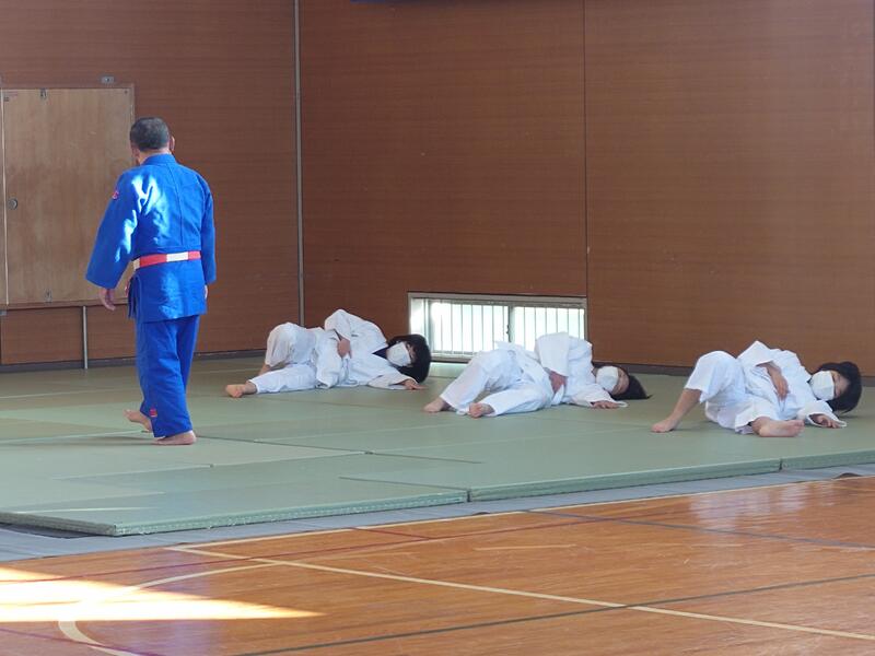 まずは、柔道着の着方や簡単な受け身の取り方などを教えていただきました。