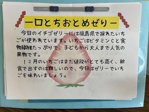 火曜日には福島県産のいちごを使ったイチゴゼリーが出ました