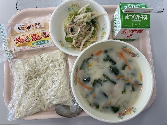 水曜日は麺の日。ほうれん草のクリームスパゲティとクレープがでました