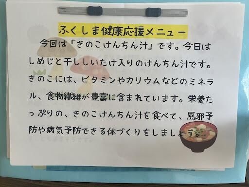 給食では、なるべく県内産や相馬産の食材を使って給食が出されるよう、相馬市の栄養士さんが工夫されています。