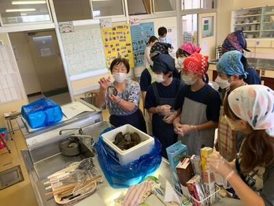 そのあと山信田の阿部さんを講師に、震災前後の磯部の漁業などについて話を聞きました。そして、地区の特産であるホッキ貝を湯がいて実食しました。