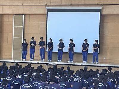 さて、本日の集会は学習がテーマでした。学習委員会から、単元テストに向けた学習の仕方についての事例紹介や、先生方から学習への取り組み方について説明があり、学期末を控え1学期の学習をふり返るよい機会となりました。