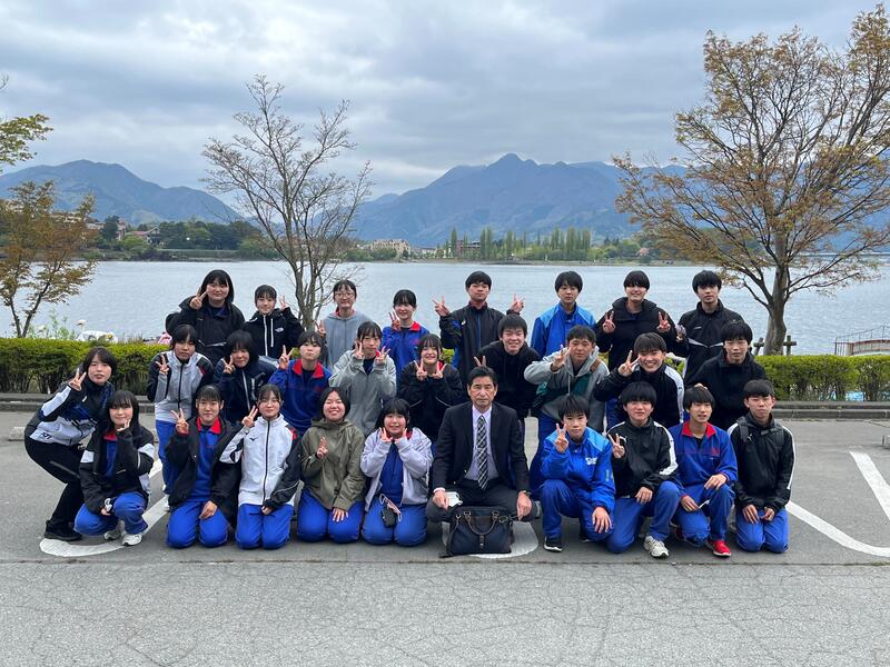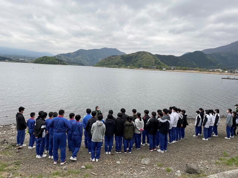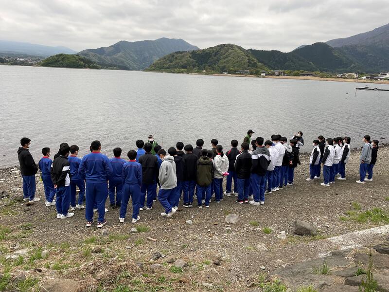 2023年4月25日 13時33分河口湖をバックに集合写真!