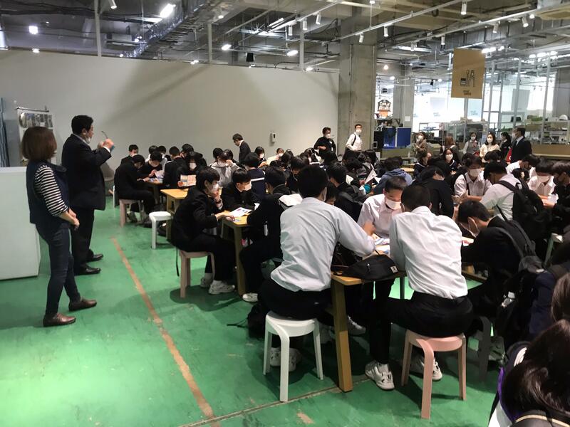 2022年11月8日 16時16分スモールワールズ東京に到着しました。説明を聞き、SDGsのクイズラリーに挑戦するようです。