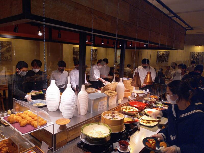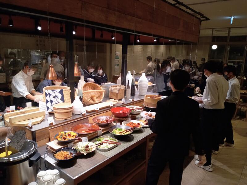 2022年11月8日 20時42分体調不良者もなく、無事にホテルに到着したようです。夕食はバイキング形式でした。