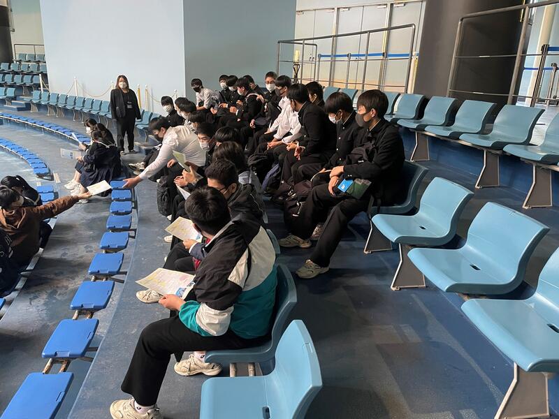 2022年11月9日 09時44分アクアパーク品川に到着したようです。まずは、イルカについてのお話を聞いて...。