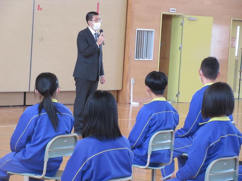 講師として、自衛隊福島地方協力本部相双地域事務所長の永井様、広報官の杉本様にお越しいただき、講話をいただきました。
