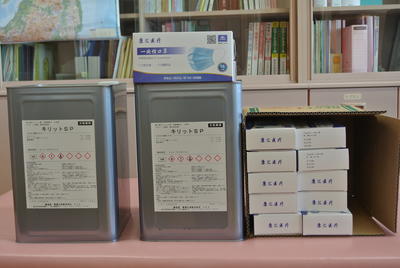 昨年に引き続き、成田食品様より相馬市内の小中学校に消毒液30缶とマスクを寄贈していただきました。心より感謝申し上げます。早く新型コロナ感染の収束を願うものです。遅れましたが、堀養護教諭の産休補充として、鈴木養護助教諭が今月より赴任しましたのでよろしくお願いいたします。