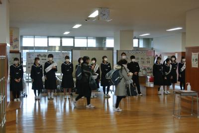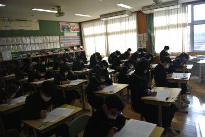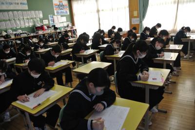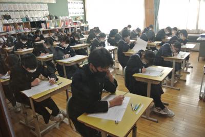 3年生は昨日と本日、中学校最後の定期テスト(学年末テスト)に全力で取り組んでいます。進路実現に向け、悔いの残らないよう全力で取り組んで欲しいと思います。