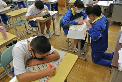 規模を縮小したとは言え、ビッグアートは方眼を例年より細かくしていますので、係の生徒の作業は大変です。3年生のステージ発表もいろいろな制限のある中で、試行錯誤して準備を進めているようです。当日が楽しみです。