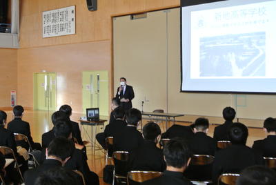 2020年11月5日 14時58分本日の午後、相双地方7校の高校の校長先生や教頭先生方をお招きして、高等学校説明会を実施しました。その後、入試事務等に関わる説明を行いました。将来の夢を叶える第一歩として、進路選択が目前に迫ってきます。今まで以上に、1分1秒を惜しんで、授業や家庭学習に集中して取り組んで欲しいと思います。進路先については、ご家庭で十分にお話し合いください。悩みや困り事がありましたら、遠慮なく学校に相談してください。