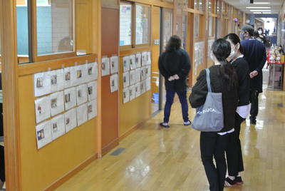 2020年11月6日 10時06分向陽祭が校内のみで実施となりましたので、急遽本日が授業参観日となりました。3密を避けるため廊下での参観でした。向陽祭のビデオを視聴いただいたり、生徒作品をご覧いただいたりもしました。お忙しい中、参観いただきありがとうございました。