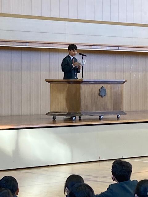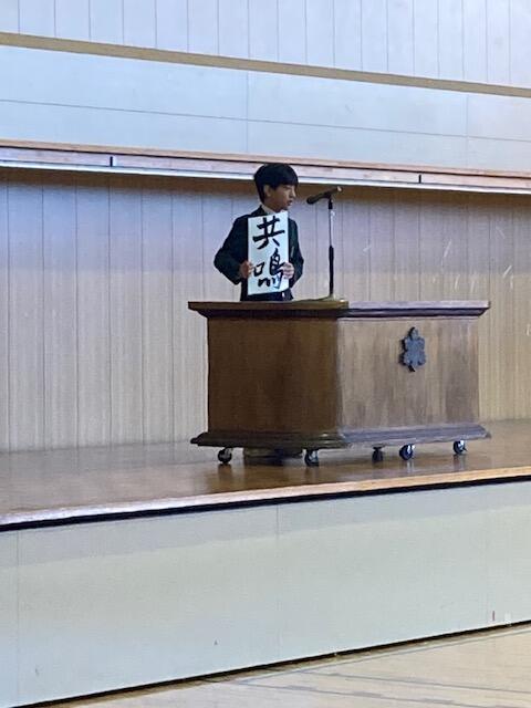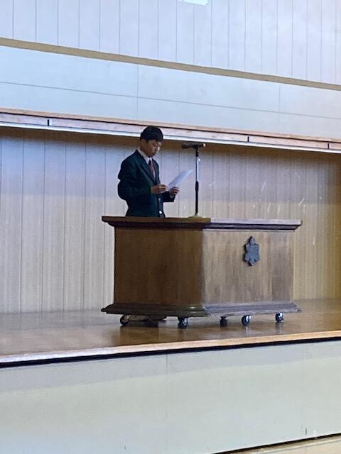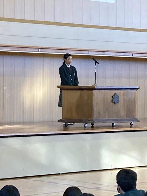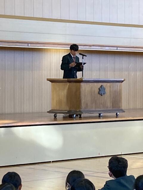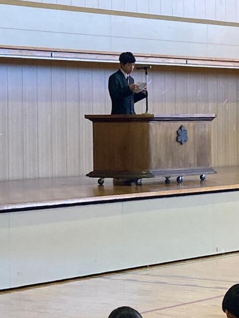 終業式後の全校集会では、学年代表生徒の発表があり、2学期を振り返りながら、来年の抱負や3学期に向けての抱負など、力強く発表することができました。
