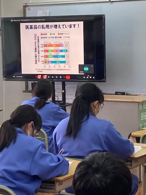 2025年1月15日 15時01分5校時に2・3年生を対象に「薬物乱用防止教室」が行われました。講師に、福島県相双保健福祉事務所医療薬事課 主任薬剤技師 宮田裕介様をお迎えし、薬物に関する正しい知識と体に及ぼす影響など、細かなところまで講話をしていただきました。当初の予定では、体育館の実施でしたが、インフルエンザ感染防止対策の観点から、各教室でリモートによる講演となりました。みなさんモニターを通しながら、しっかりと話しを聞くことができました。