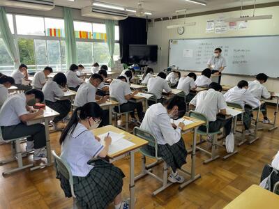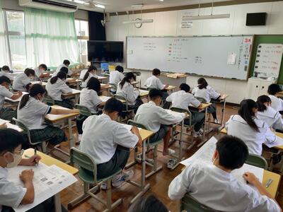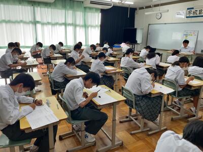 2学期中間テストが行われました。5教科のテストに生徒は真剣に取り組んでいました。