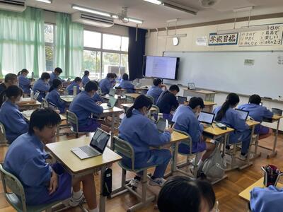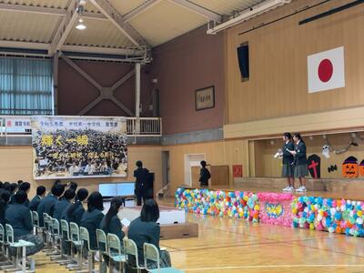 5・6校時に後期生徒会総会が行われました。今回は、新型コロナウイルス感染者が多いことから、体育館では行わずに放送での実施となりました。生徒会執行部や各種委員会の活動目標および活動計画について質疑応答がなされ、建設的な意見や要望など活発な意見交換が行われました。