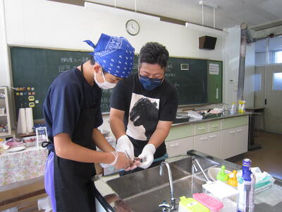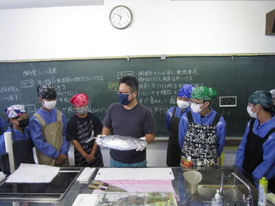 先週3日から6日まで、2年生の家庭科調理実習として「お魚マイスター」の授業を、相馬魚類株式会社の皆さまをお招きして行いました。鰯の手開きやかつおの竜田揚げなどを調理し、おいしくできあがった料理に生徒は満足そうでした。