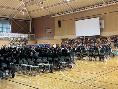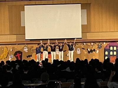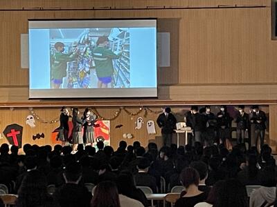 蛍雪祭2日目の今日は、学年総合発表、吹奏楽部発表、有志発表が行われました。総合学習発表では各学年が学習した内容について、スライドや演技を交えてわかりやすく紹介しました。吹奏楽部発表や有志発表では、全校生徒と一体になって盛り上がる場面が見られ楽しい時間を過ごすことができたようです。今年は感染対策のため2日間にわたっての開催でしたが、無事に大成功を収めることができました。これまで企画・準備を進めてきた文化祭実行委員・生徒会役員のみなさん大変お疲れさまでした。そして、感染対策により来賓をお招きせず保護者のみの参観と、PTAバザーや模擬店の中止、合唱コンクールの保護者入れ替えなどにご理解とご協力を賜りありがとうございました。
