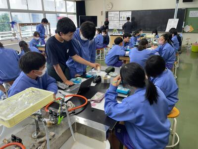 文部科学省委託事業「日本科学振興財団による放射線に関する出前授業」が、本日と明日の2日間2年生を対象に行われます。1日目の今日は、「放射線について考えよう」をテーマに、線量計を用いて身の周りの放射線を測定するなど実験を交えながら学習しました。