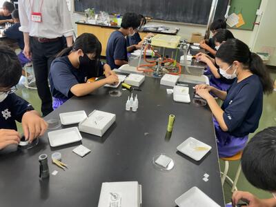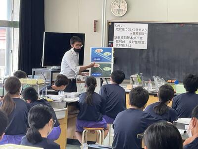 科学技術振興財団の講師の方をお招きして、放射線に関する出前授業を行いました。放射線について正しい知識を身に付けることを目的としており、今日は各クラス1時間ずつ「霧箱」による放射線の実験を行いました。授業は明日も行われます。